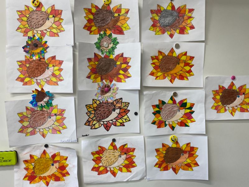 Na znak pomaly prichádzajúcej jesene si Slniečka vyrobili takýchto krásnych ježkov na farebnom lístí.