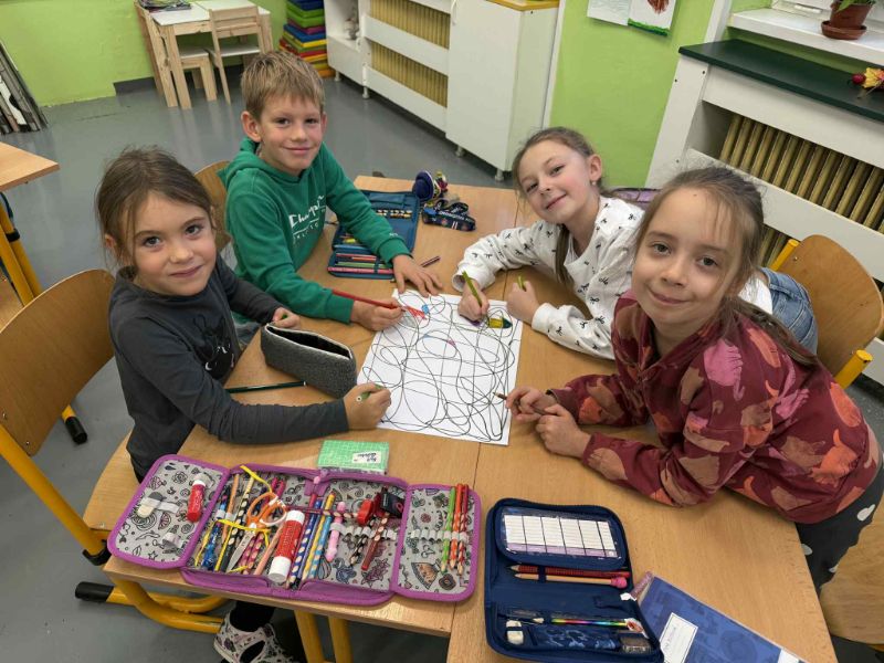 Novembrové aktivity u Psíkov boli pestré. Z jesenných tónov sme sa postupne preniesli do tých zimných. Uctili sme si starkých na besiedke s dielničkou, pocity sme premenili na farby a vznikli krásne abstraktné obrázky, privítali sme Martina ale aj prvý sneh, ktorý síce prišiel s oneskorením ale napokon sme sa dočkali. November bol naozaj z každého rožka troška a my sa už tešíme na čarovné decembrové obdobie. Deti z 1.P a pani vychovávateľka Zuzka