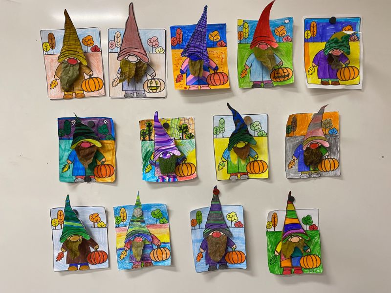 V novembri sme vyrobili huby, škriatkov s tekvicou, chlapčeka s košíkom plným ovocia a misy sme naplnili pozbieranou jesennou úrodou. Slniečka a pani učiteľka Vierka