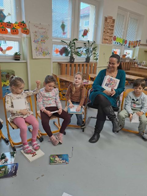 vzácnu návštevu. Mamička Jakubka Šimu prijala naše pozvanie a prišla nám prečítať knihu Magdalénka a