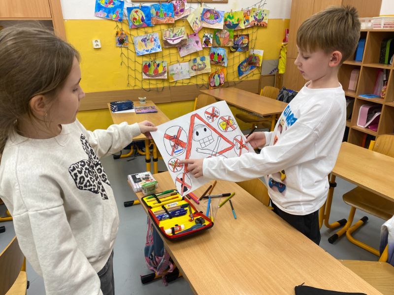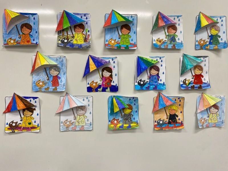 V novembri sa Slniečka zapojili do celoškolskej akcie "Týždeň boja proti digitálnej závislosti". Za priaznivého počasia sa venovali na školskom dvore rôznym pohybovým aktivitám a daždivé dni si spríjemnili výrobou pestrofarebných dáždnikov. Slniečka a pani učiteľka Vierka