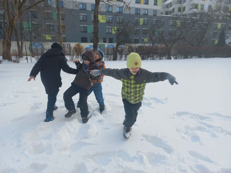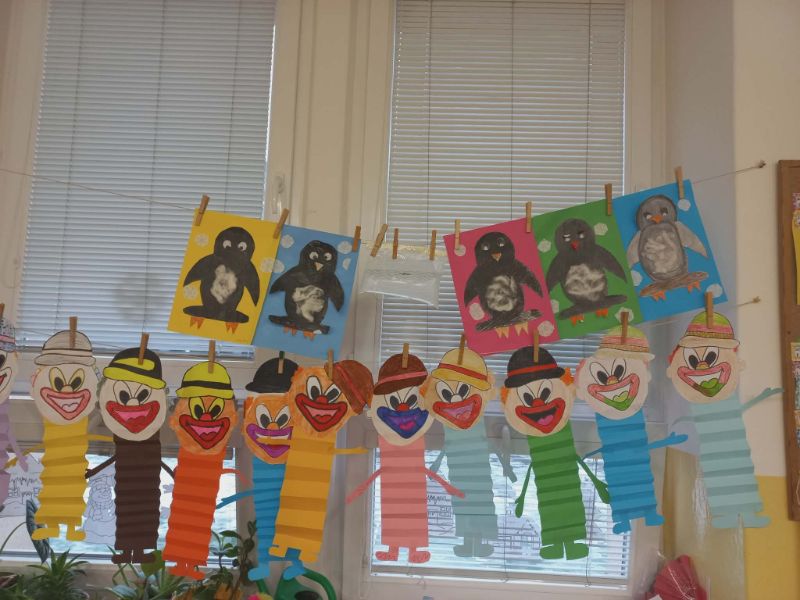 Po vianočných prázdninách začal nový kalendárny rok. Deti v triede Mravčekov sa tešili na tradičný karneval, kde sa predviedli v zaujímavých maskách a zabavili so Srandou bandou. Triedu si vyzdobili veselými škraboškami a tiež postavičkami šašov a milými tučniačikmi. Užili si bohatú nádielku snehu na školskom dvore, zabavili sa pri pohybových hrách. Mravčekovia a pani vychovávateľka Danka