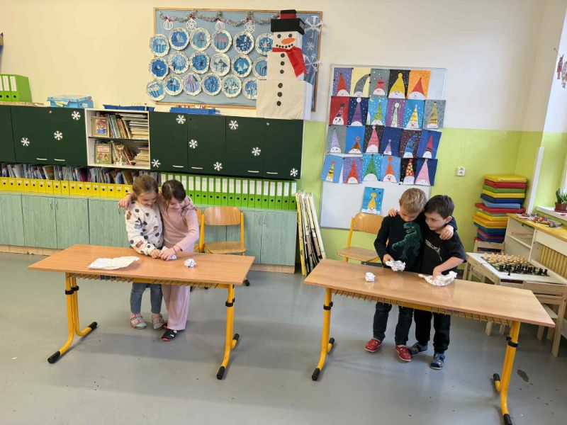Január u Psíkov sme odštartovali novoročnou párty ako sa patrí. Počasie nám prialo a skúšali sme zamrznuté pokusy s bublifukom, vyrábali sme si kalendáre a nezabudli sme ani na vtáčiky v mrazoch. Vybláznili sme sa nie len v snehu ale aj na skvelom karnevale. Ani sme sa nenazdali a prvý polrok plný veselých dní, pohybu, tvorenia a nových vedomostí je za nami. Psíkovia a pani vychovávateľka Zuzka