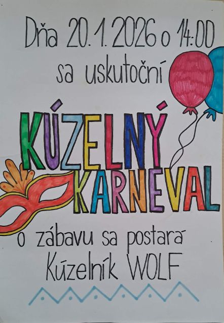20. január bol dňom, kedy sa konal KÚZELNÝ KARNEVAL. O skvelé kúzla a výbornú zábavu sa postaral kúzelník WOLF so svojou Srandou Bandou. Deti stvárňovali vo svojich kostýmoch rôzne rozprávkové postavičky a zvieratká. Všetci sa spoločne zabávali a užívali veselú atmosféru. Akciu pripravili vychovávateľky Danka Sklenárová a Katka Gajdošová
