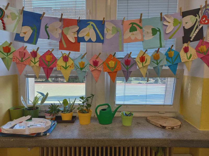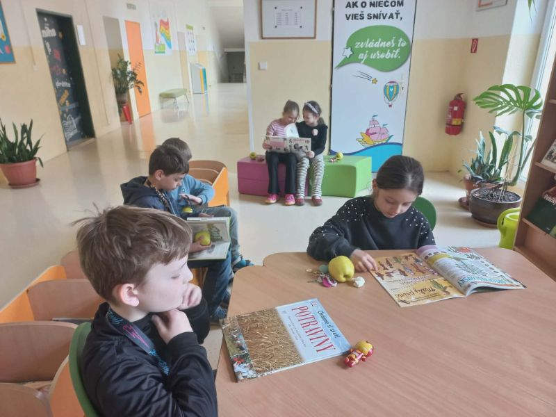 Mravčekovia privítali jar kvetinovou výzdobou triedy, vytvorili milé darčeky ku dňu žien pre svoje mamky. Svetový deň vody si pripomenuli tvorbou spoločného plagátu a zábavným kvízom. Marec je mesiacom knihy a my sme ho oslávili netradičným čítaním obľúbených kníh. Mravčekovia a pani vychovávateľka Danka.