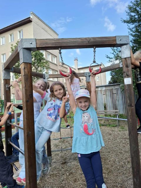 III. oddelenie SLONÍČATKÁ z 1. S , malí - veľkí prváčikovia, ktorí radi tvoria, smejú sa, hrajú a zodpovedne pristupujú k svojim novým dôležitým úlohám. Najdôležitejšie sú však priateľstvá, ktoré im v tejto novej etape pomáhajú rásť a užívať si spoločne strávený čas aj s pani vychovávateľkou Silvikou.
