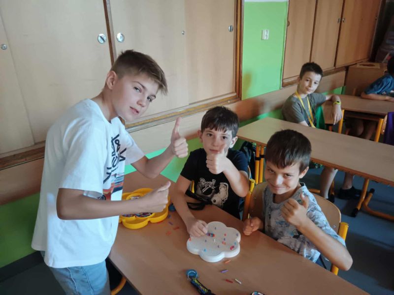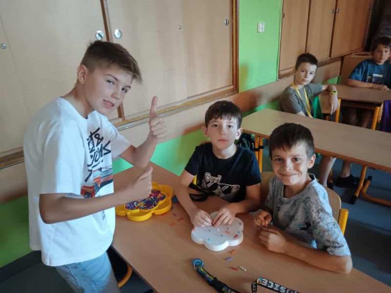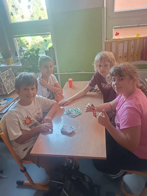 Do V. oddelenia v tomto školskom roku patrí 26 žiakov z 2.L a 4.L Majú šikovné ručičky, radi sa smejú a hrajú so svojimi kamarátmi. Najviac sa im páči na školskom dvore, kde sa môžu vybehať a zahrať aj s kamarátmi z iných tried. Pani vychovávateľkou v tomto oddelení je Bc. Martina Kohútová.