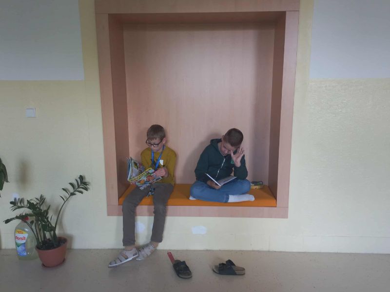 Sme trieda Mravčekov 3.M a Motýlikov 4.M. Spolu tvoríme 10.oddelenie ŠKD. Našou vychovávateľkou je Danka Sklenárová, s ktorou trávime spoločne čas po vyučovaní. Radi tvoríme pekné veci, hráme sa, tancujeme, športujeme. Nezabúdame ani na čítanie a plnenie domácich úloh. To všetko vykonávame na základe určených pravidiel Angel parku.