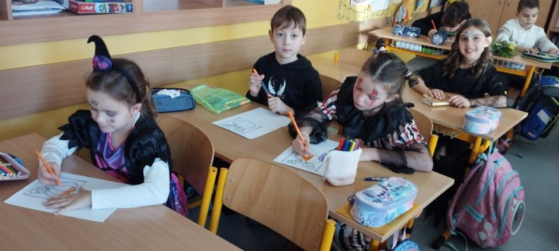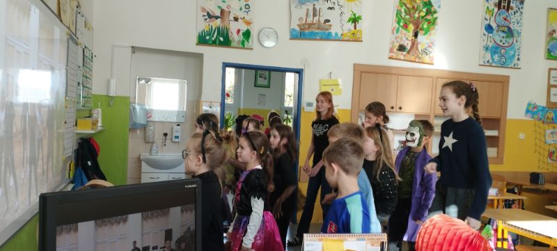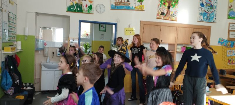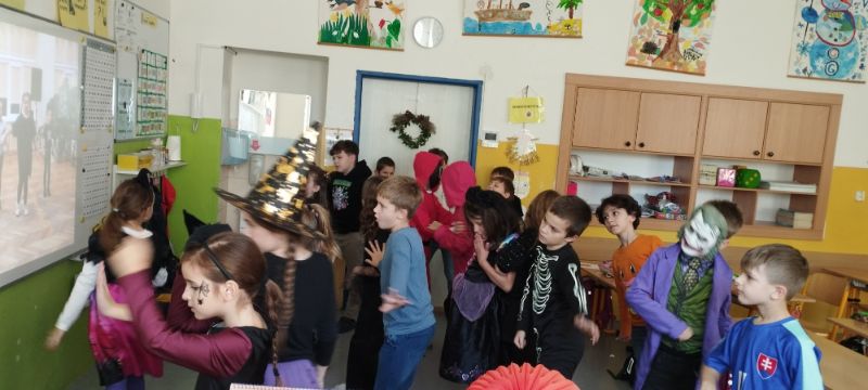 Halloweenske aktivity boli plné veselej nálady - hudby, tanca, masiek, tvorenia. V závere žiaci vyjadrili, ktorá aktivita ich najviac zaujala. P. uč. Grušovská