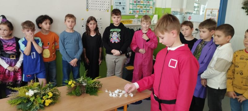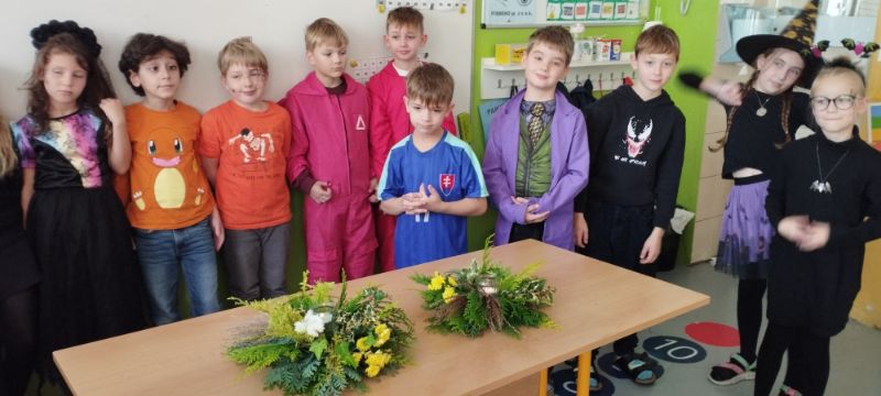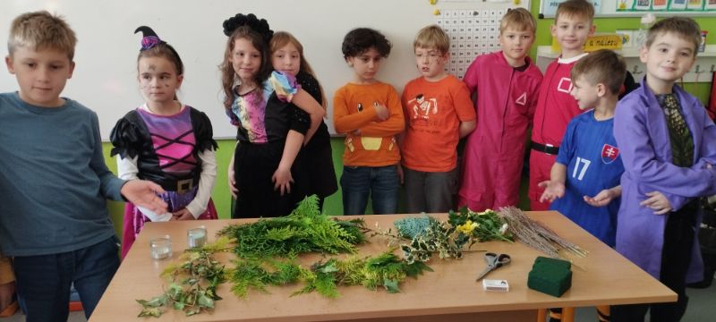 Deň pred jesennými prázdninami si žiaci 3.S užili tematický / Halloween + Dušičky. Slniečka sa zapojili do EKOvýzvy Zelenej školy "Dušičková výzva 2025 ", ktorá bola v znamení sloganu "Viac lásky - menej plastu". Cieľ výzvy: vytvoriť ekologický, prírodný, recyklovateľný veniec, kyticu, ktorý nezaťaží plastovým odpadom prírodu. V komunite si žiaci porozprávali, ako prežívajú jesenné sviatky so svojimi najbližšími.