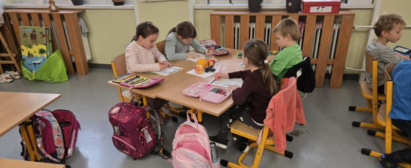 Malé Tigríky si na rozprávke o škaredom jabĺčku, ale s dobrým srdcom, ukázali, ako je dôležité si navzájom pomáhať. Deti na blokovom vyučovaní na tému „Empatia, pomoc a vitamíny v ovocí a zelenine“, sa prostredníctvom rozhovorov, hier a príbehu učili rozpoznávať, ako môžu pomáhať druhým a prejavovať empatiu v bežných situáciách. Spoločne sme si zahrali scénky o pomoci kamarátovi, ktorý spadol, alebo sa cítil smutný. V ďalšej časti sme sa rozprávali o zdravom stravovaní – deti pomenúvali ovocie a zeleninu, hovorili, ktoré majú rady a dozvedeli sa, že obsahujú vitamíny dôležité pre zdravie. Triedili obrázky zdravých a nezdravých potravín, riešili zábavné matematické úlohy, napísali si ovocný diktát a každá skupina si vytvorila obrázok svojho obľúbeného ovocia. Vyučovanie bolo pestré, hravé a viedlo deti k pochopeniu významu pomoci, ohľaduplnosti a starostlivosti o svoje zdravie.