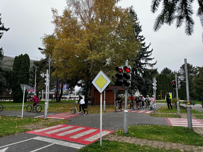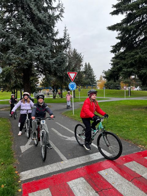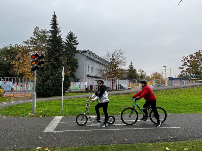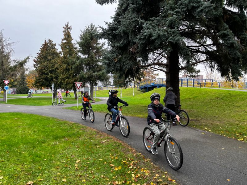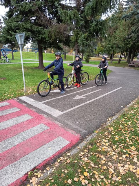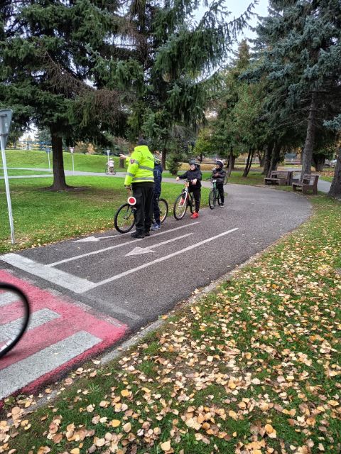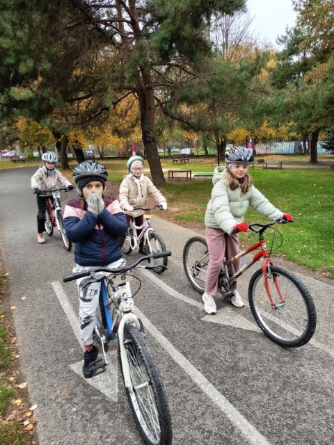 Akú výbavu má mať bicykel, čo znamenajú jednotlivé dopravné značky, ako sa správať pri jazde bicyklom, kto kedy má prednosť na ceste - všetky tieto základné predpisy sa učili žiaci 4.L a 4.Z na dopravnom ihrisku 21.10.2025. Po praktických jazdách na bicykli a koobežke na simulovanej ceste so značkami, semaformi pod dozorom policajtov splnili predpoklady získať Preukaz cyklistu.