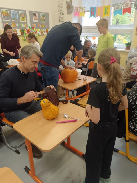 V piatok 23.októbra 2025 privítali Líštičky vo svojej triede vzácnu návštevu - starké a starkých. Starých rodičov prekvapili krátkymi básničkami, tančekmi i pesničkami a obdarovali vlastnoručne vyrobenými darčekmi. Potom sa spoločne pustili do tvorenia. Pod dohľadom a láskavým vedením starkých zhotovili veselých i strašidelných tekvičkových svetlonosov.