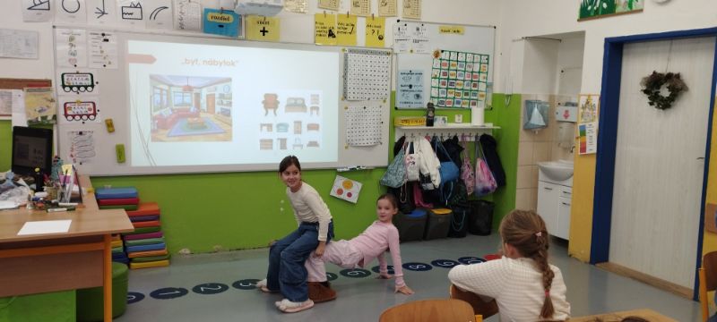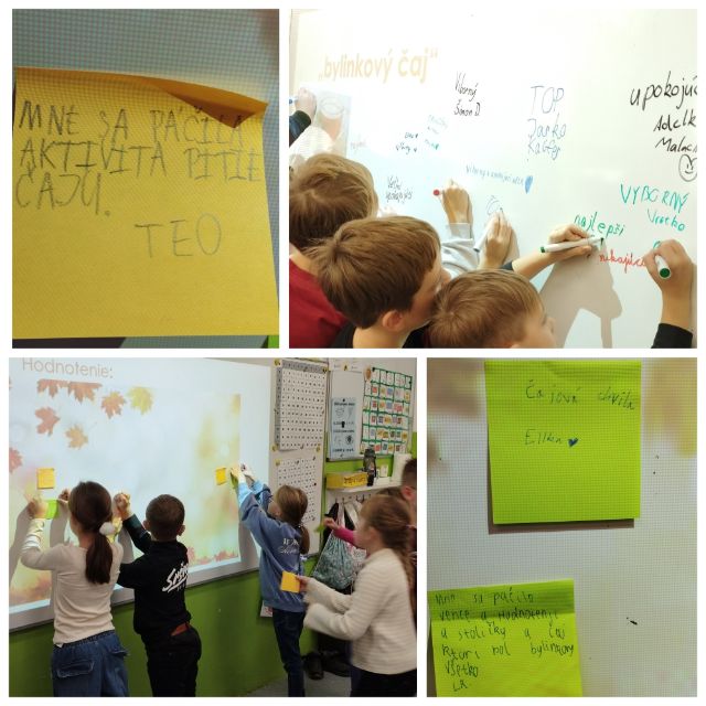 Blok začali ranným kruhom. Vo vyučovacom bloku sa prepájali medzipredmetové vzťahy MAT, SJ, PDA, VLA, PVC. Blok bol zameraný na uplatnenie a rozvoj celoživotných pravidiel a zručností: aktívne počúvanie, spoluprácu a iniciatívu. V aplikačných úlohách žiaci upevňovali a rozširovali svoje vedomosti: "príbytok" - MAT rysovanie v štvorcovej sieti, "nábytok" - PVC výroba makiet nábytku, "bylina" - PDA spoznávanie bylín, bylinkový čaj, skupenstvo látok - kvapalné, plynné, "bývať" - VLA zrealizovaný prieskum - žiacka preferencia vidieckej a mestskej krajiny pre život, "bytové" - výroba jesenných dekorácií z prírodnín. Obohatením bloku boli aktivity cez pantomímu, moje naj. Harmonizér - posedenie v spoločnej bylinkovej čajovni, kde si žiaci vychutnávali bylinkový čaj. Prezentačné zručnosti si žiaci posilňovali pri prezentácií svojich vypracovaných úloh. Na záver prebehlo hodnotenie /sebareflexia - plnenie úloh, úroveň uplatnenia pravidiel a zručností. P. uč. Grušovská
