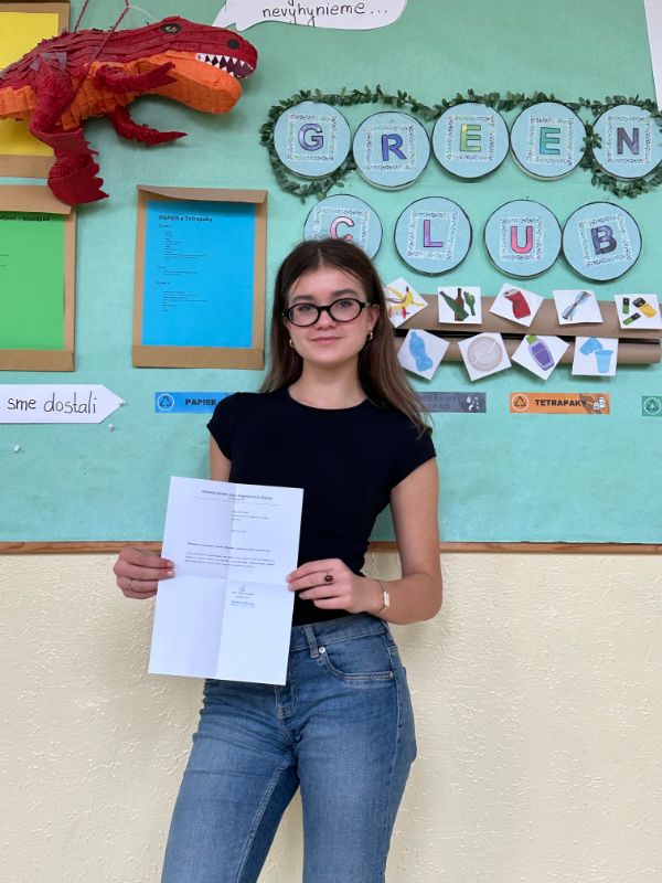 V kategórii 1B získala bronzové, teda 3. miesto naša deviatačka Emma Vojčík z 9.B.