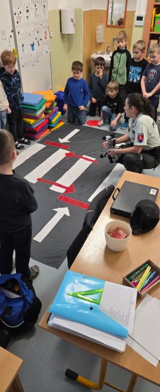 Trieda Tigríkov sa zúčastnila zaujímavej a poučnej vyučovacej hodiny dopravnej výchovy, ktorú viedla p. policajtka Deniska. Deti sa hravou formou oboznámili so základnými pravidlami cestnej premávky. Učili sa, ako sa majú správne správať chodci, ako bezpečne prechádzať cez cestu, rozpoznávať dopravné značky a dbať na svoju bezpečnosť. Hodina bola pre deti veľmi zaujímavá a poučná a odniesli si z nej množstvo nových poznatkov.