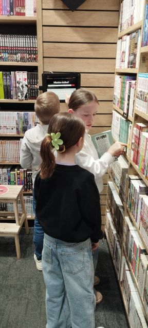 Slniečka sa vybrali na návštevu kníhkupectva, kde sa ponorili do prieskumu literatúry pre deti a mládež. Žiaci absolvovali veselé aktivity, ktoré ich presvedčili, že knihy sú jedna veľká čitateľská jazda. Slniečka mali možnosť vybrať a zakúpiť si knihu podľa vlastného gusta, a tak domov odchádzali s novými knižnými kamarátmi a úsmevom. Žiaci sa opäť presvedčili, že čítanie je super dobrodružstvo. P. uč. Grušovská