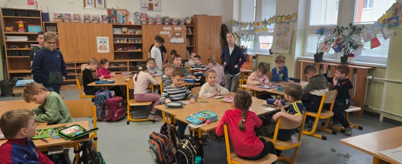 Žiaci 5. C učili naše malé Tigríčatá matematiku aj slovenský jazyk. Prváci sa nadšene zapájali, hrali sa a všetky úlohy robili s radosťou. Príklady boli zábavné a poučné zároveň – skrátka, deň plný učenia a objavovania!