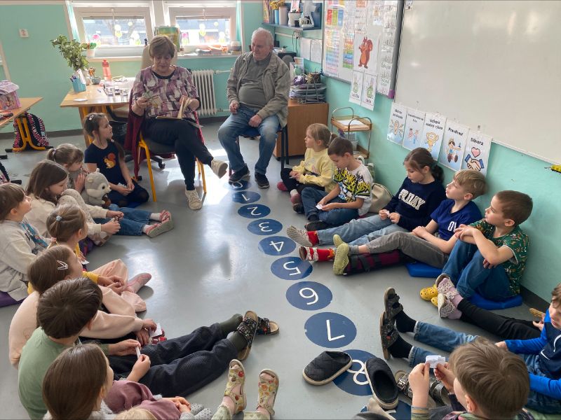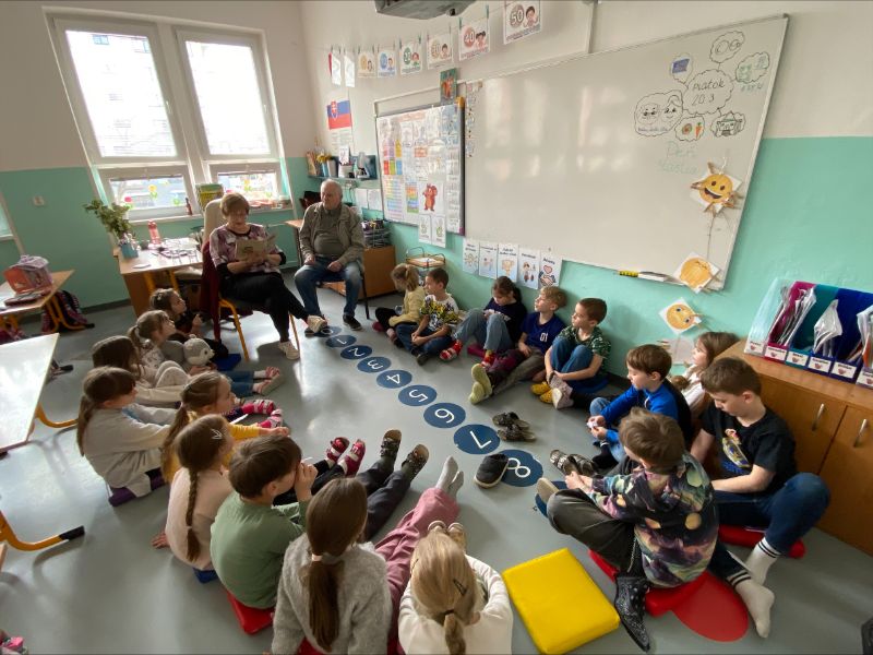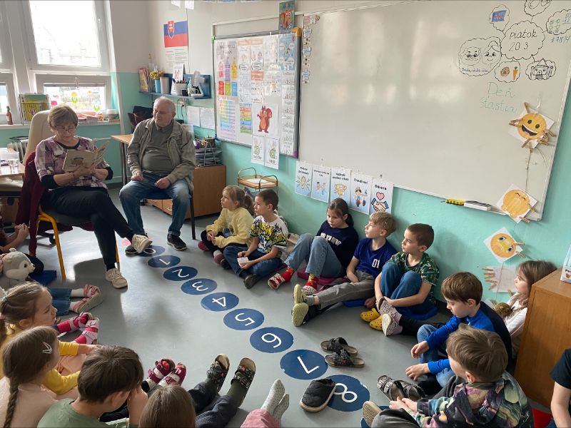 V piatok 20.3. mali Veveričky vzácnu návštevu. V rámci akcie „Číta celá škola“ k nám do triedy zavítali Paulínkini starí rodičia, ktorí nám prečítali krásny príbeh z knihy o Štoplíkovi. Nešlo však o hocijakú knihu. Túto knihu si Paulínkina babka stráži ako rodinný poklad, keďže ju dostala v čase, keď ona sama bola prváčkou.
