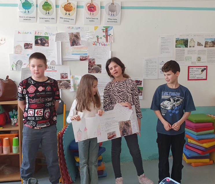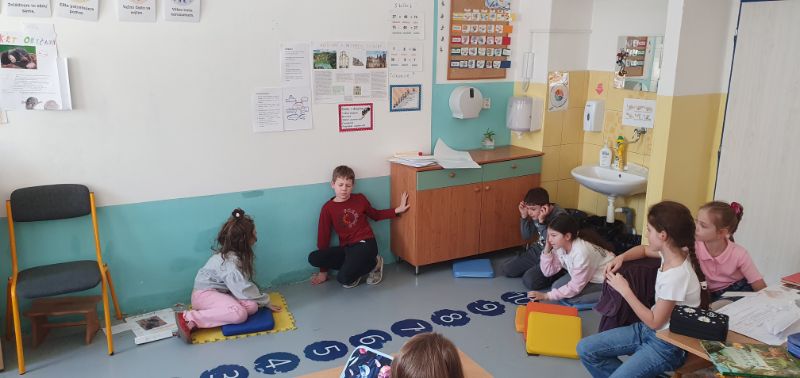 V komunite sa žiaci zamysleli nad slovným spojením „Byť ako lev v klietke“. Neskôr sa v príbehu Schovávačky oboznámili s výletom do ZOO a plnili úlohy súvisiace s porozumením textu. Následne so zvedavosťou vyberali časti obrázkov zvierat, pomocou ktorých boli zadelení do skupín. Každá zo skupín dostala obálku, v ktorej sa ukrývali informácie o zvieratách. Tie bolo treba triediť podľa daných pravidiel. Žiaci riešili aj matematické úlohy s cestujúcimi v autobuse do ZOO a nákupy kusov granuliek určených pre zvieratká pomocou indického násobenia.