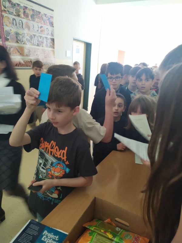 Pri príležitosti Dňa Zeme pripravili členovia školského parlamentu pre svojich spolužiakov zábavnú aktivitu zameranú na triedenie odpadu. Dvojice súťažili v rýchlom určovaní správneho kontajnera podľa farby, pričom stáli chrbtom k sebe a odpovedali zdvihnutím farebnej kartičky.