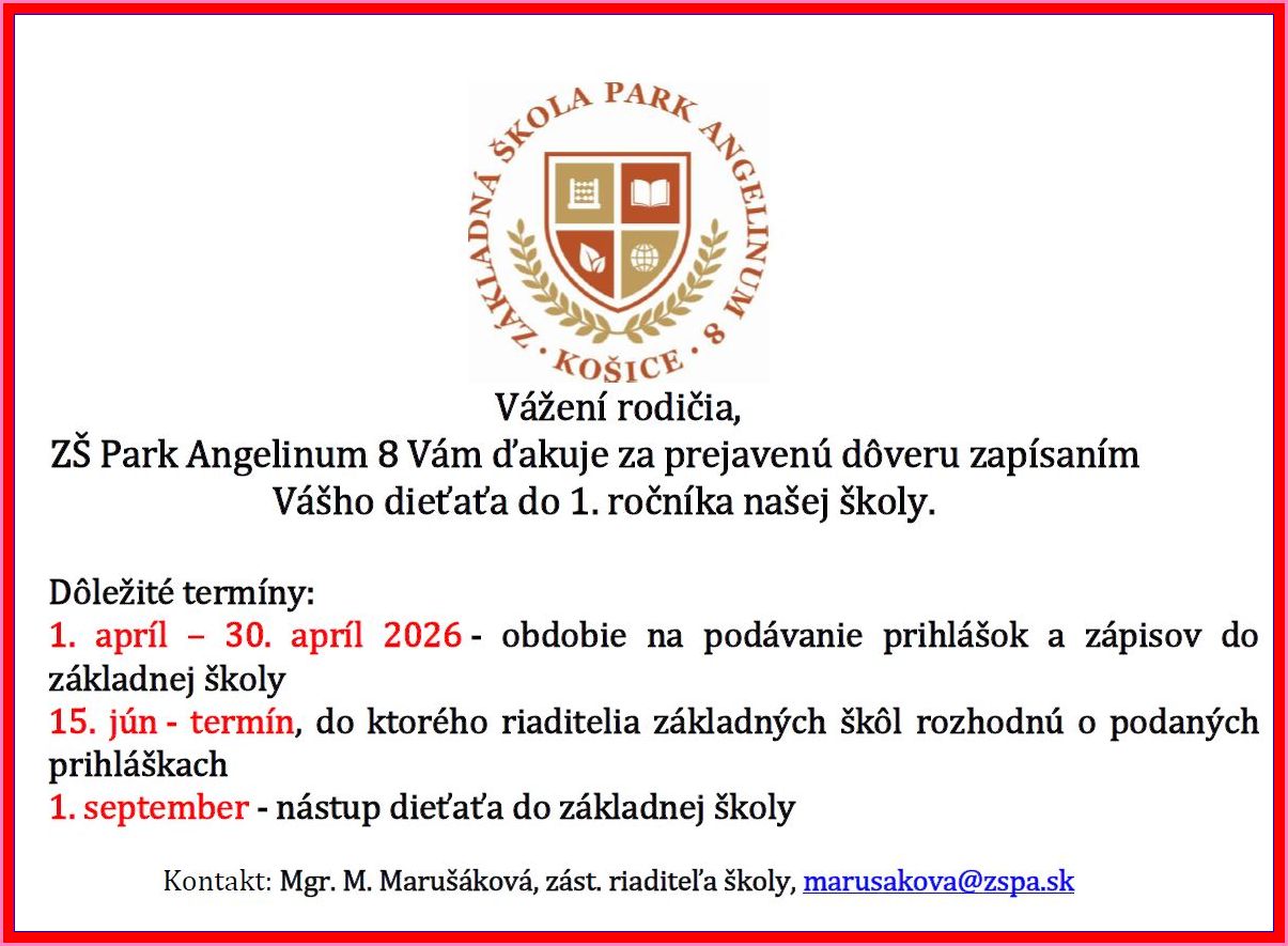 Pre elektronický zápis, prosím, kliknite na tento odkaz Portál ePrihlášky: TU