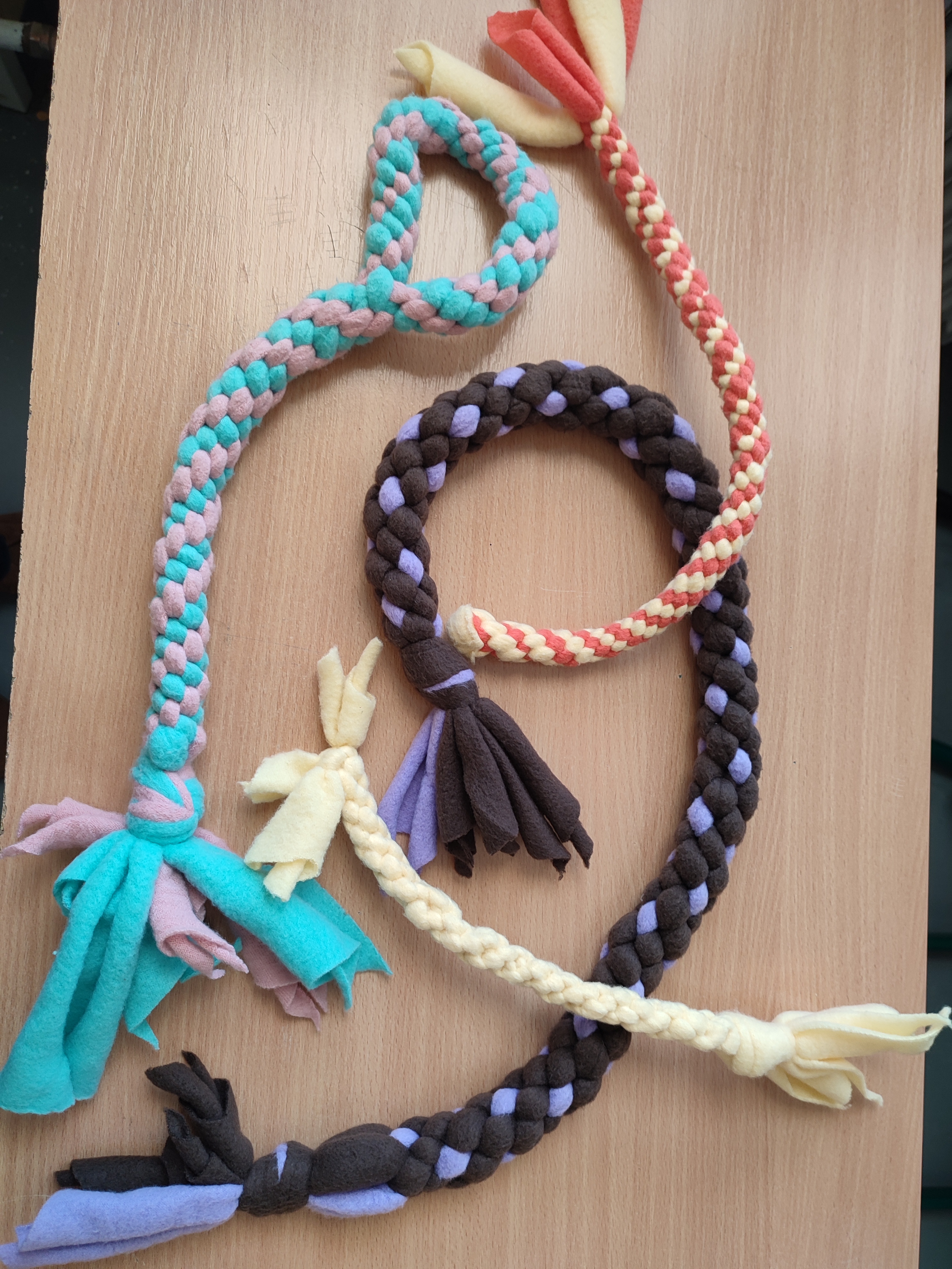Máte doma, u babky alebo u susedov psíka, ktorý sa rád hrá. Kúpte mu hračku, ktorú sme vyrobili z flisu. Potešíte naraz dvoch psíkov – toho svojho hrou s novou hračkou a toho v útulku, ktorý niečo dostane za získané peniaze.