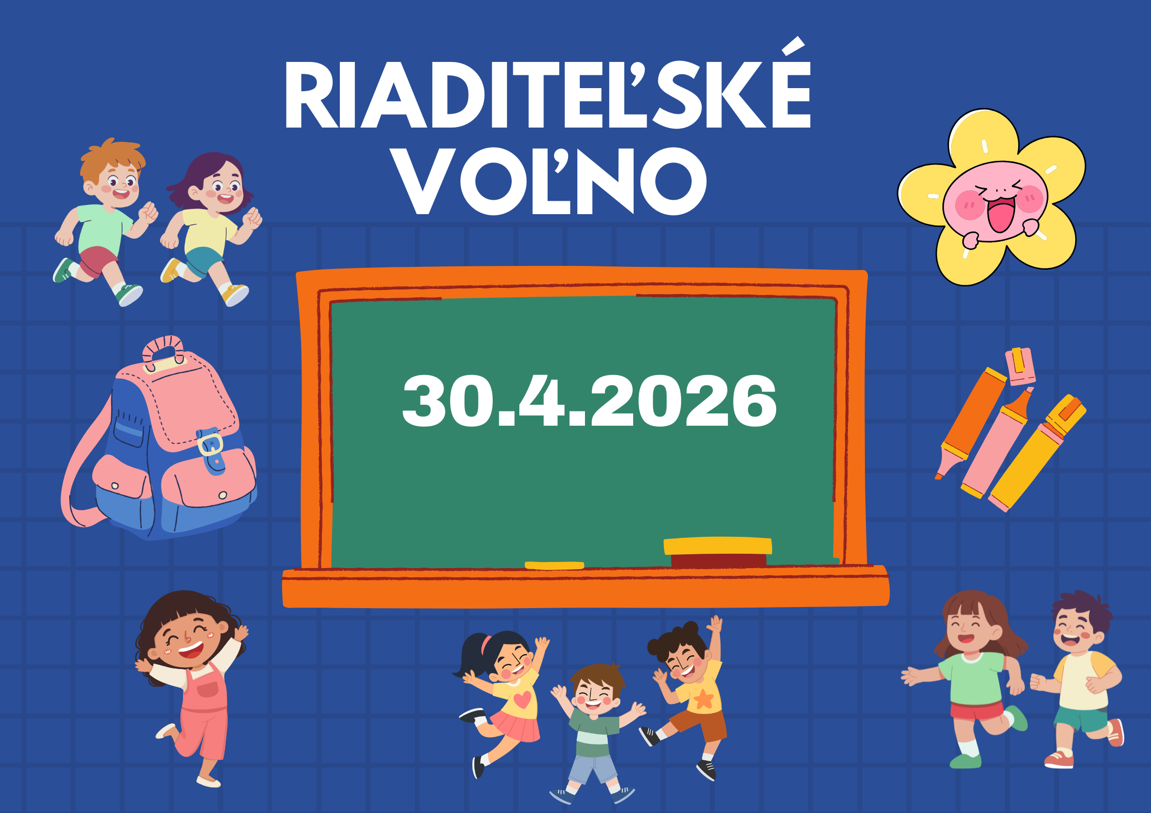 riaditeľstvo školy oznamuje, že dňa 30. apríla 2026 (štvrtok) udeľuje z organizačných dôvodov všetkým žiakom riaditeľské voľno.